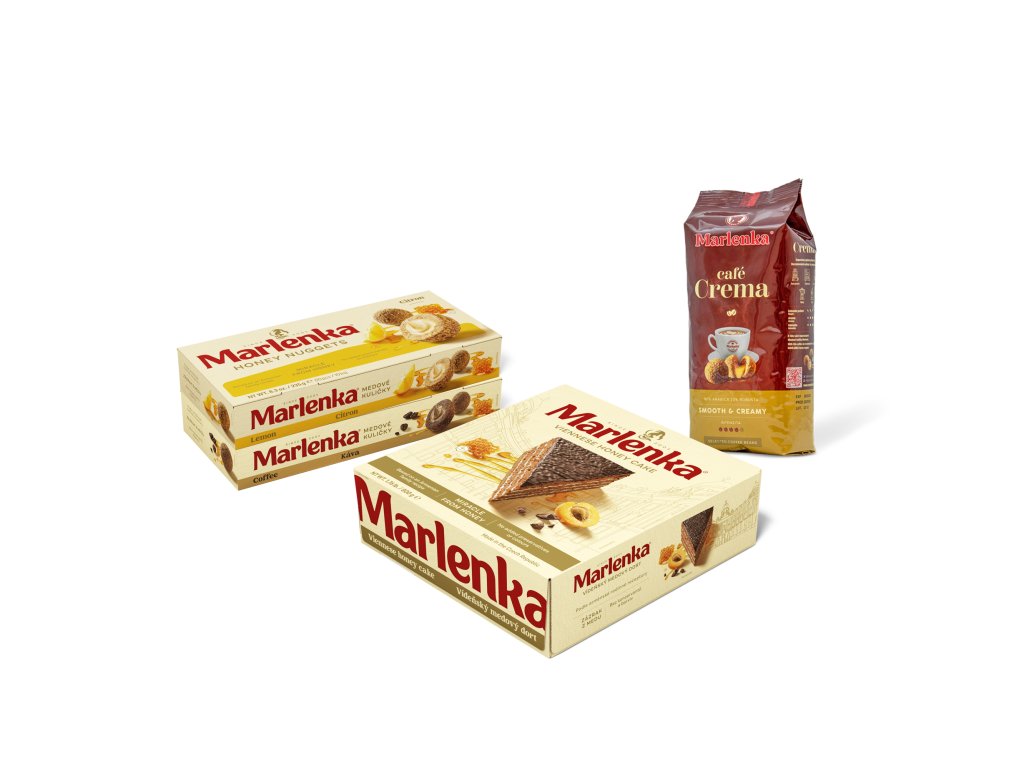 Sada se skládá z Vídeňského medového dortu MARLENKA®, Kávových medových kuliček MARLENKA®, Citronových medových kuliček MARLENKA® a zrnkové kávy MARLENKA® café Crema.