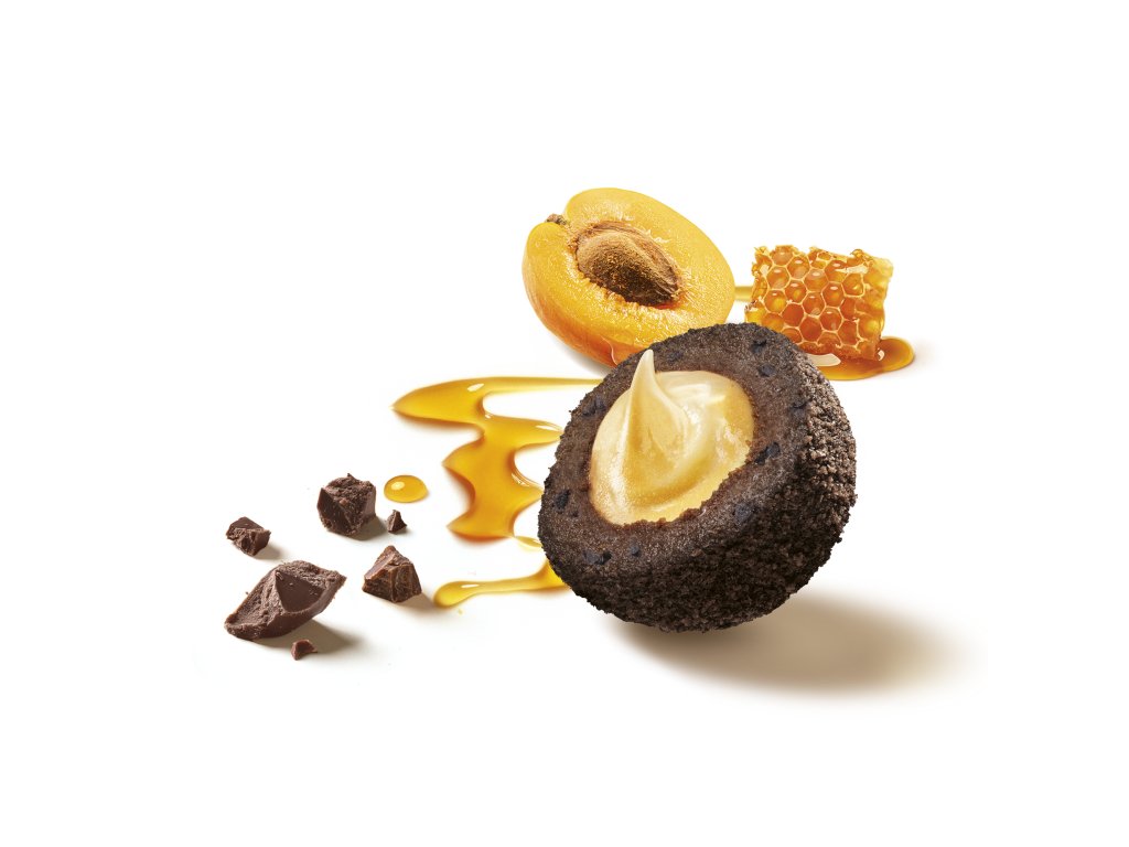 Uvnitř nadýchaného kakaového těsta se ukrývá jemný krém s meruňkovým džemem, který každému soustu dodává svěží ovocné tóny. K dokonalosti přispívají i kousky hořké čokolády dodávající každému kousku výjimečnou chuť i texturu.